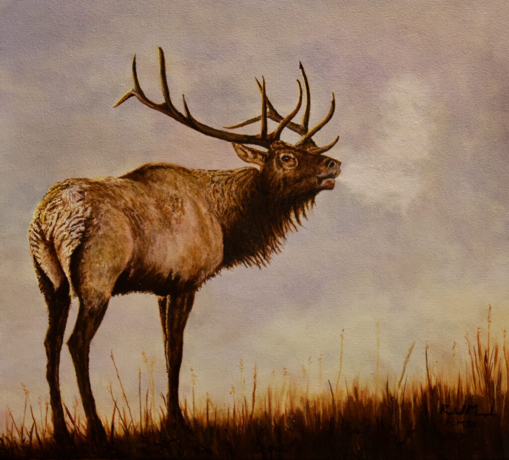 Can you feel the cold, crisp air as this majestic bull peers over the horizon as the sun sets in the west?
